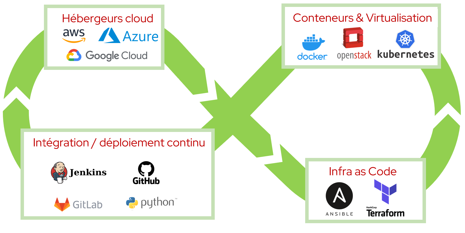 Dans un contexte de transformations techniques (Cloud et hybridation) et méthodologiques (Agilité, CI/CD), les projets d’industrialisation et d’automatisation sont des enjeux de plus en plus prépondérants. Osmozium met à disposition de ses clients ses compétences Cloud & DevOps pour augmenter la productivité, réduire le Time to Market, et sécuriser les évolutions des produits et outils dans des environnements IaaS, PaaS ou On-Premise.